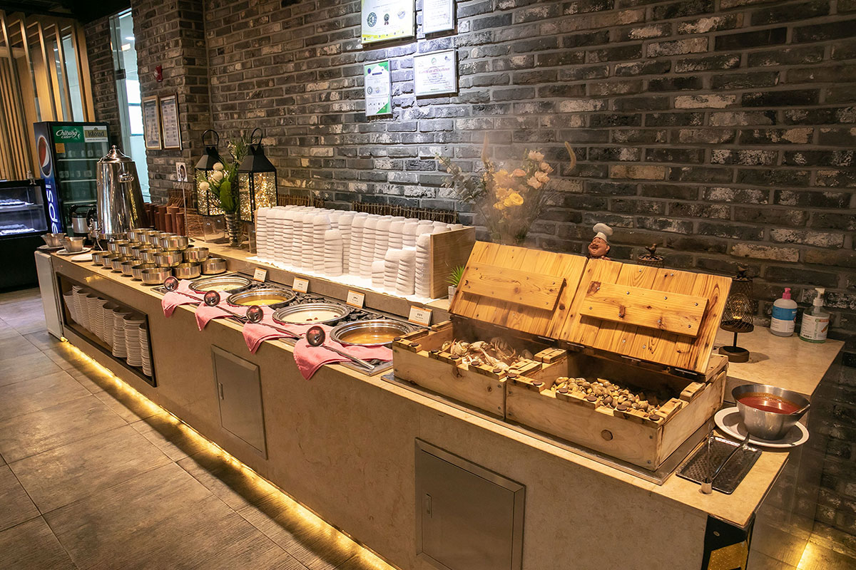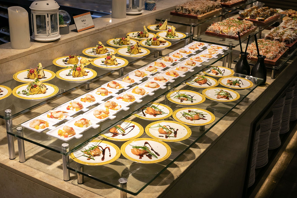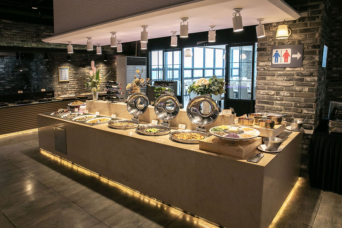 01 02 03 04 05 06 07 08 오감을 만족시킬 오픈 & 라이브 키친맛있는 즐거움이 가득한JnJ 프리미엄 뷔페 JnJ 셰프군단의 손끝에서 조리되는 요리는 더욱 특별합니다.엄선된 식자재만을 사용하여 감각적이고 맛있는 요리를 제공하고 있기에 가장 트렌디한 푸드 스타일을 경험해보실 수 있습니다. 위치4F / 5F 연회 예약 문의